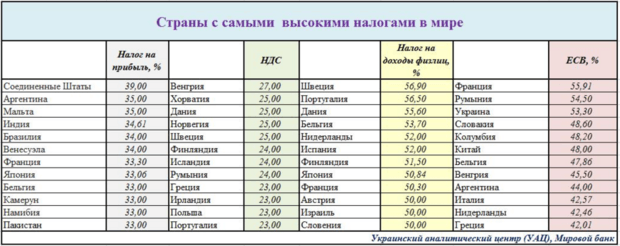 Украина только по одному показателю входит в перечень стран с самыми высокими налогами.